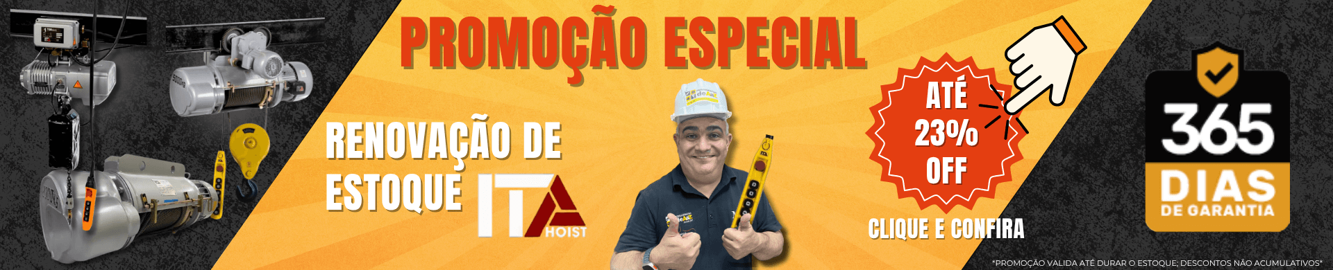 Talha Elétrica 1 Tonelada Fixa 1.5 kw - Cabo de Aço 9 metros - 220/380v, sem troller ITA Premium