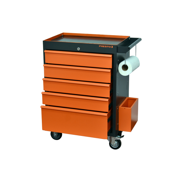 Carrinho para Ferramentas Profissional Presto com 5 Gavetas e Rodas de 4" com pintura epóxi antiferrugem.