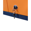 O grande diferencial deste modelo é o compartimento inferior fechado. Equipado com duas portas pivotantes (sendo a direita com fechadura e duas chaves), ele é o lugar ideal para guardar itens que exigem maior proteção contra poeira ou acesso não autorizado, como multímetros, parafusadeiras e scanners automotivos.
