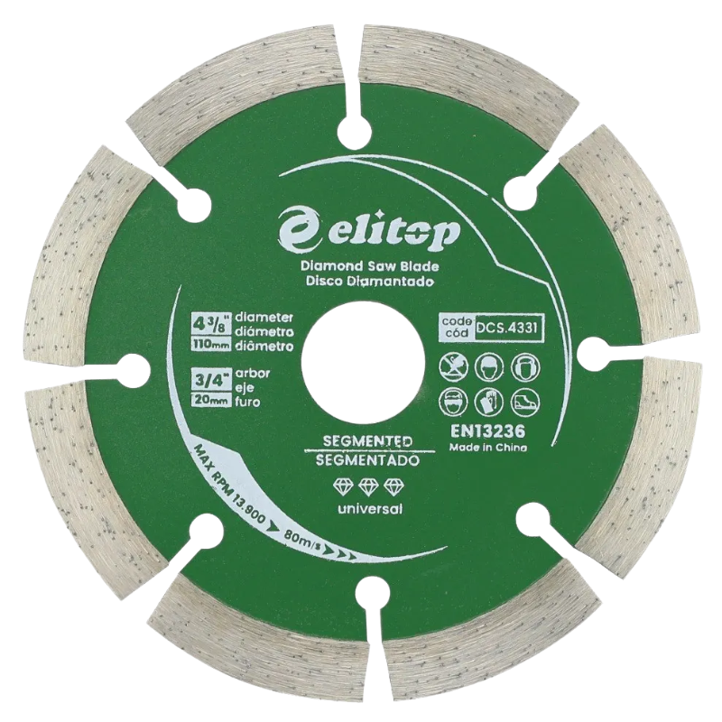 Corte bruto com precisão cirúrgica. Disco Diamantado Segmentado Elitop 110mm. Ideal para concreto, granito, tijolo e alvenaria. Design segmentado para maior resfriamento e velocidade de corte. Alta resistência com rotação de até 13.900 RPM. Compatível com as principais serras mármore do mercado.
