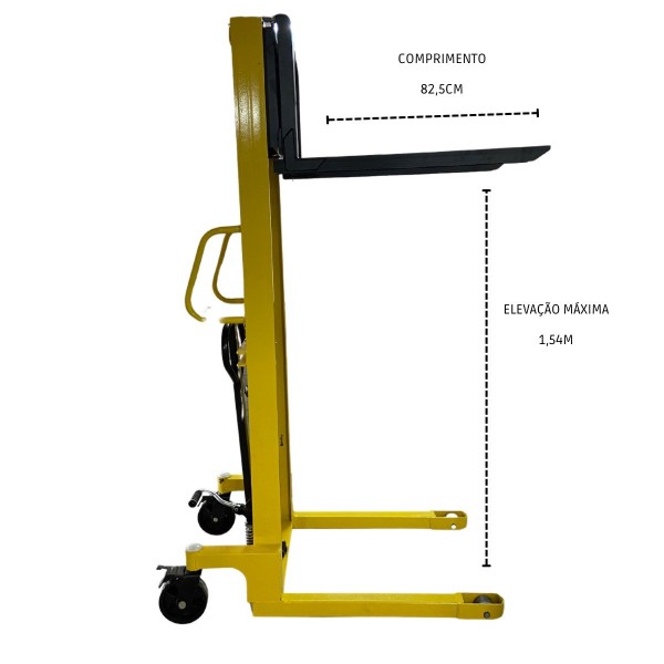 Verticalização inteligente e segura. Empilhadeira Hidráulica Manual MTM 1 Tonelada. Com elevação máxima de 1,54 m e capacidade de 1.000 kg, este equipamento possui garfos ajustáveis e trilho de aço em "C" para máxima estabilidade. Equipada com rodas de nylon com trava, garante manobras precisas em espaços reduzidos. A escolha ideal para armazéns, oficinas e comércios que buscam robustez e baixo custo de manutenção.
