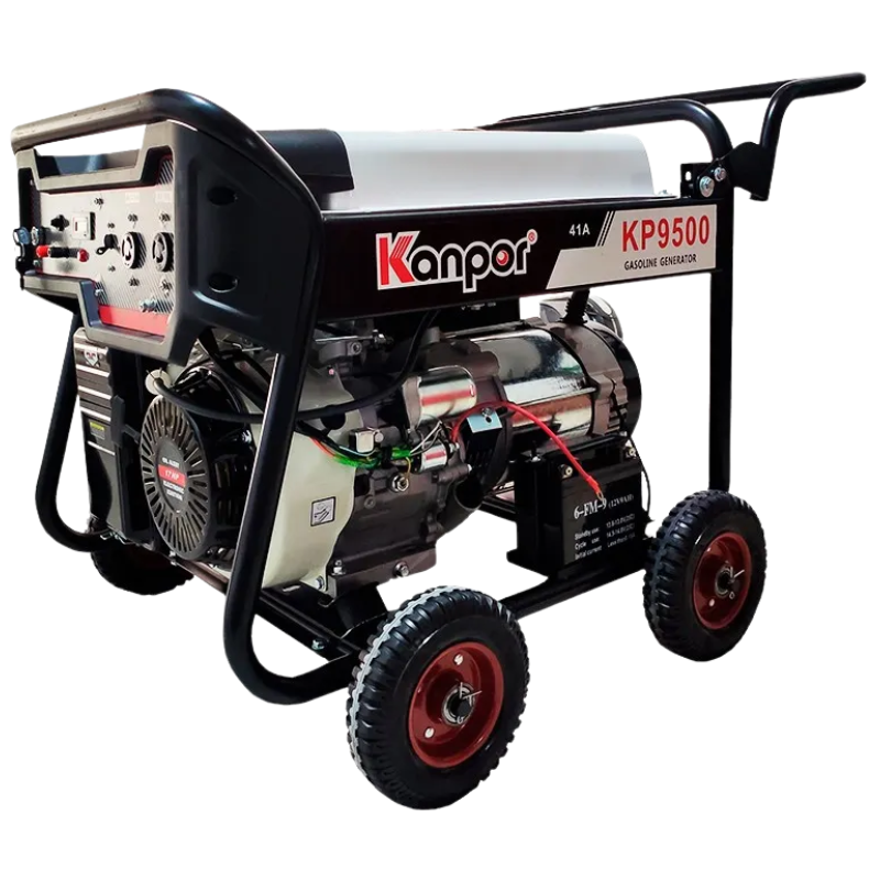 Energia ininterrupta de alta potência. Gerador a Gasolina Kanpor 8KVA 17HP. Versátil com saída 110/220V, este modelo monofásico é ideal para suportar ar-condicionado, geladeiras e ferramentas elétricas. Possui partida elétrica, tanque de 25L para até 6,5h de autonomia e já acompanha kit de rodas para fácil movimentação. Potência bruta com a confiabilidade que seu negócio ou casa exigem.