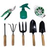 Kit completo para jardinagem com 8 ferramentas essenciais em aço carbono resistente, acompanhadas de bolsa de lona para transporte e armazenamento prático. Ideal para manutenção e cuidados precisos em jardins residenciais e áreas verdes.