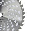 Com diâmetro de 255mm e furo de 25,4mm, esta lâmina possui encaixe universal preciso. A espessura de 1,65mm garante a rigidez necessária para cortar pequenas árvores com segurança. O metal duro das pontas mantém o fio por muito mais tempo.