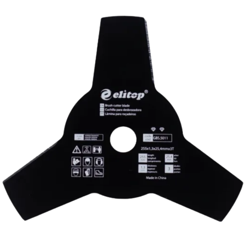 Diferente de lâminas comuns, o modelo de 3 pontas da Elitop distribui melhor o impacto do corte. Isso gera um funcionamento mais estável e um som de operação equilibrado. Você ganha velocidade em áreas rurais ou na manutenção profissional de grandes lotes.