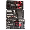 Caixa de metal com 103 ferramentas Cromo Vanádio, muito sólida e com rebites de metal, as ferramentas são completas, muito grossas e fáceis de usar, sem deslizamento quando usado. Contém 3 gavetas, gavetas bem resistentes e flexível para abrir. Cada gaveta é completa de ferramentas, o conteúdo de cada gaveta é: