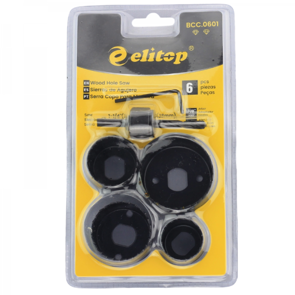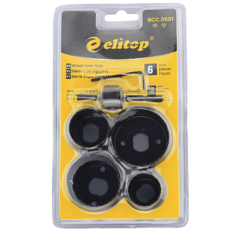 O Jogo de Serras Copo ELITOP foi desenvolvido para facilitar a vida de quem trabalha com madeira e seus derivados. Seja para instalar um passa-fios em uma mesa de escritório ou para realizar furos em armários de cozinha, este conjunto oferece os diâmetros mais demandados pelo mercado (32, 38, 44 e 54 mm). Sua construção em aço de alta resistência permite que a serra mantenha o corte por muito mais tempo, oferecendo um desempenho consistente em MDF, compensado e madeiras macias.