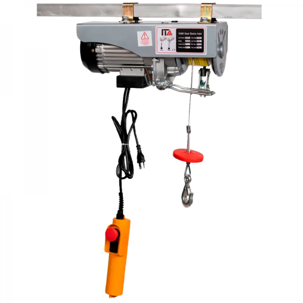 Potência compacta e versátil. Talha Elétrica ITA Premium PA600. Capacidade dupla: 300 kg (20m) ou 600 kg (10m) com polia de inversão. Motor de 1000W (1,33 CV), cabo de aço de 4,5mm e proteção IP40. Ideal para elevação vertical rápida e segura em ambientes comerciais e industriais leves. Praticidade e resistência para o seu dia a dia.